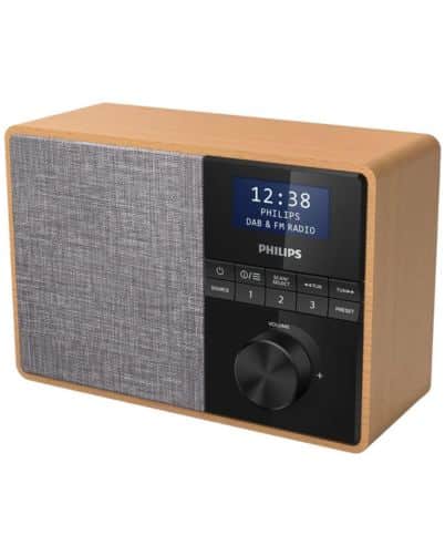 Philips TAR5505 DAB-radio er en kompakt og alsidig enhed med et stilfuldt design. Det sorte trækabinet og grå højttalerstof passer ind i ethvert rum. Du kan nemt bruge den med frontkontrolpanelet og den elegante drejeknap. Med DAB+ og FM-tunere kan du gemme op til 20 stationer for at få klar radiomodtagelse. Radioen kan enten bruge batteri eller AC, hvilket gør den ideel til køkkenbrug med et indbygget minutur i displayet. Den har også Bluetooth, så du kan streame musik og podcasts fra din smartphone, hvilket giver en god lydoplevelse. 3″ fuldtonehøjttaleren leverer en solid lydkvalitet på trods af radioens størrelse.